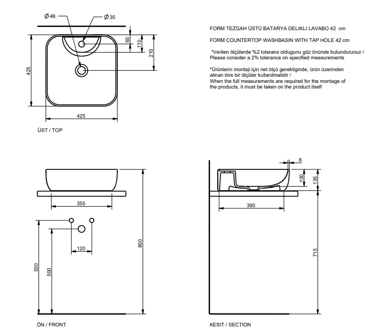 Form Mat Ant.Tez.Üstü Bat.Delikli Lavabo Extra